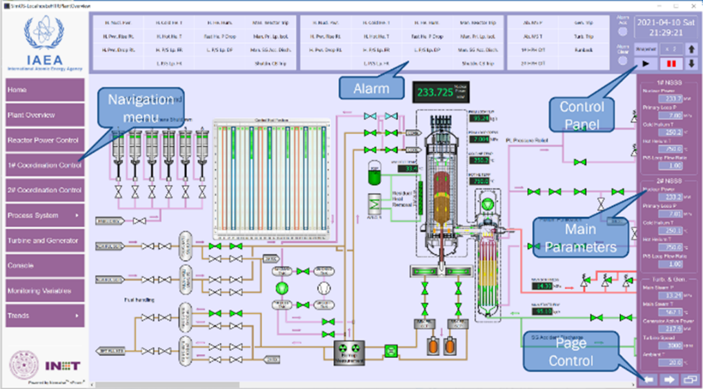 IAEA’s educational training simulator of HTGR (to be delivered) 3) Key nuclear reactor software The nuclear reactor software is developed in three stages. It was practical to import the international software in the early stage. Gradually, built capacity allows us to improve the international software to meet the requirement of design and analysis. Strongly supported by the national policy and fundings, motivated by nuclear reactor design and deployment, new package of software is developed and leading disciplines are realized.