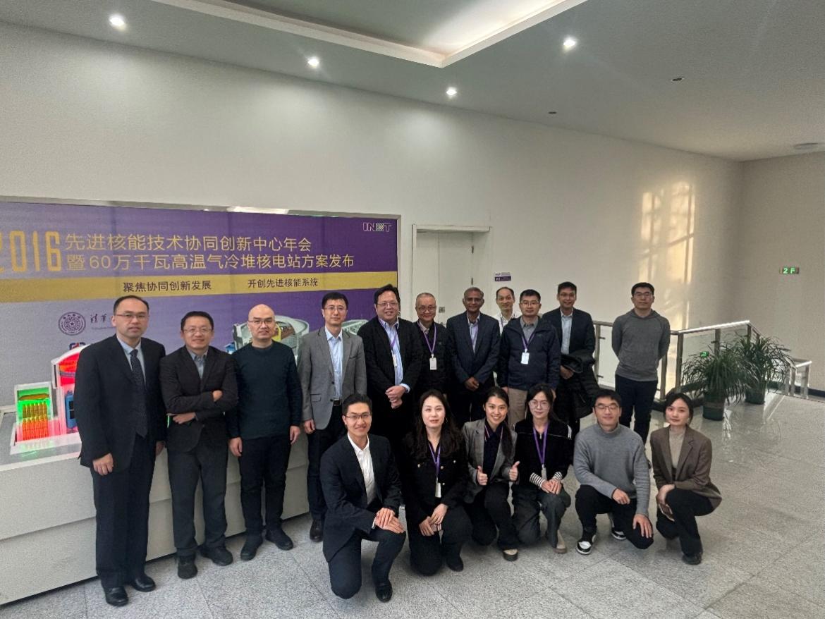 核研院副院长王海涛教授代表我院对代表团的到来表示热烈欢迎,并围绕核研院的发展历程、科研体系以及高温气冷堆技术的研发进展与工程应用成果作了整体介绍。上午,代表团先后参观了10MW高温气冷实验堆、先进反应堆工程实验室及多模块高温气冷堆主控制室验证平台等设施。下午的学术交流会由核研院多位科研骨干主讲。史力研究员、孙俊副教授、桂南副教授、陈晓彤副教授及赵军副研究员分别就结构力学、热工水力、核燃料技术、系统安全分析等领域的研究成果作了专题报告,展示了核研院在高温气冷堆关键技术与前沿探索方面的主要工作。新加坡国立大学LEE Poh Seng教授对核研院的热情接待与周到安排表示感谢,并介绍了新加坡国立大学机械系的基本情况和研究方向。参观和会议期间,双方围绕高温气冷堆技术、潜在的学术合作以及联合培养等方面进行了讨论。