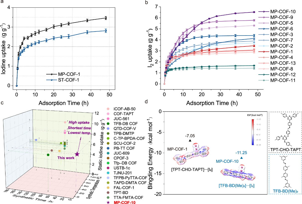 本研究不仅为 COFs 的高效合成开辟了新路径,也为新型碘吸附材料的设计与理论筛选提供重要参考,为放射性核素污染治理提供了高性能材料支撑。